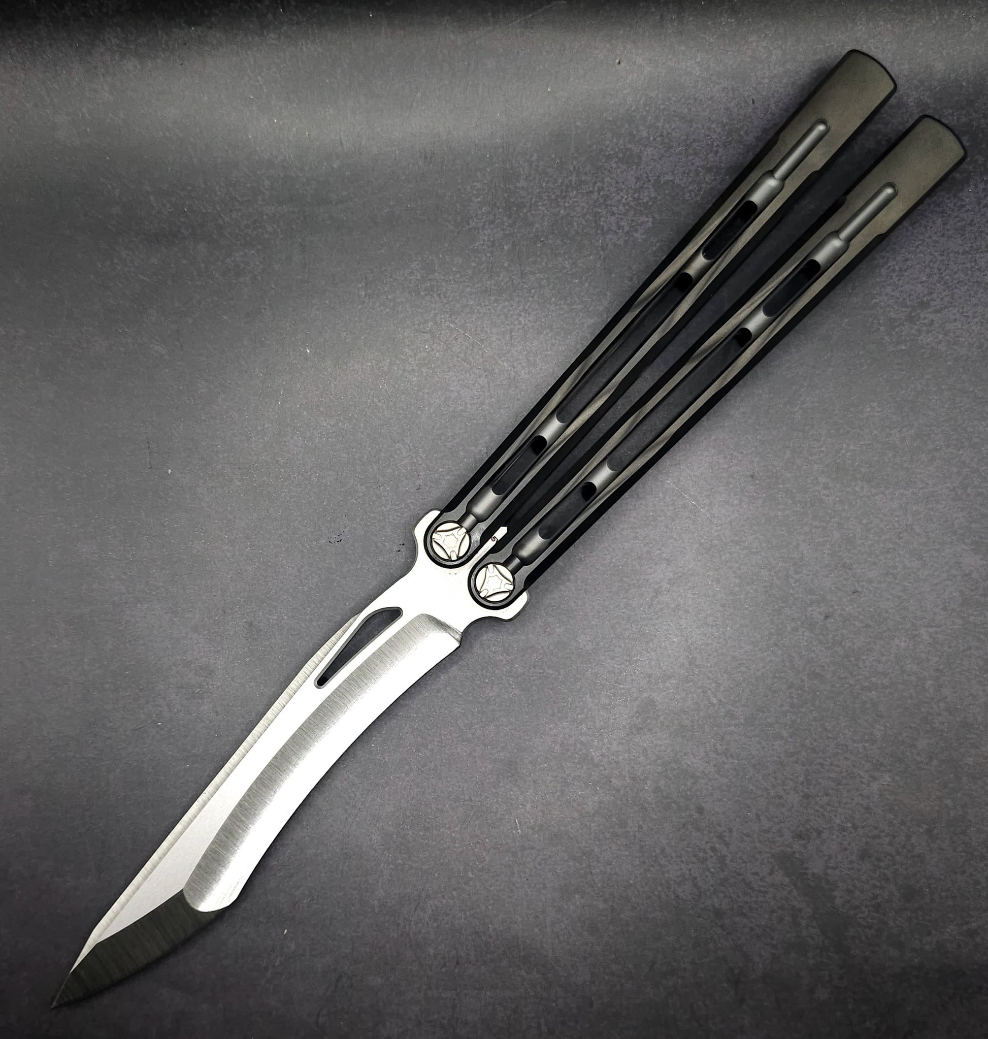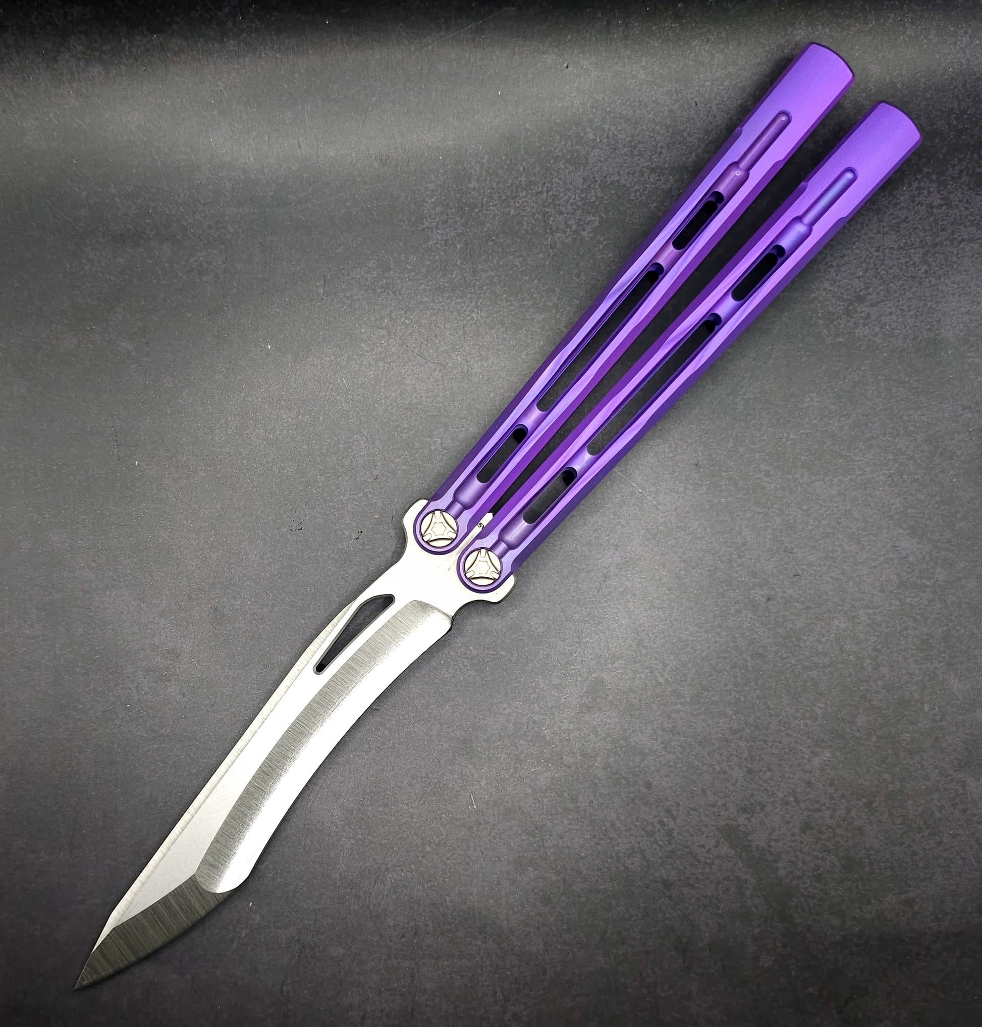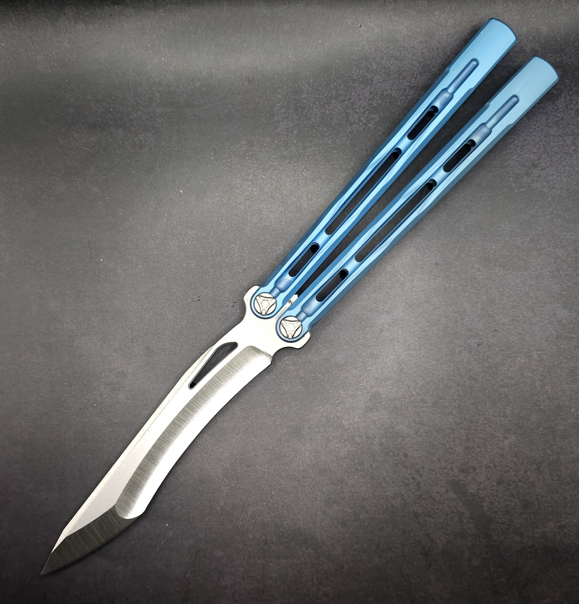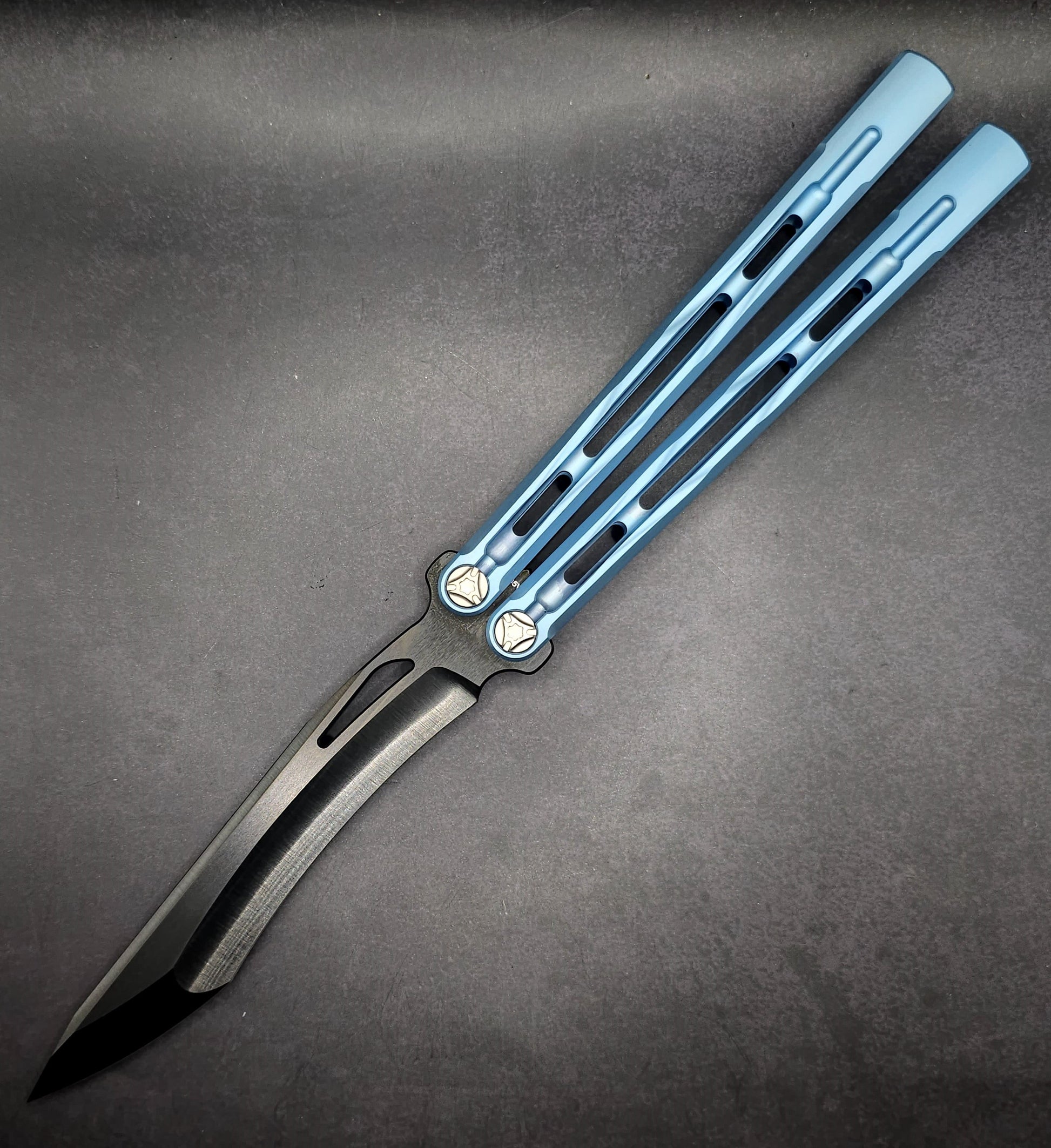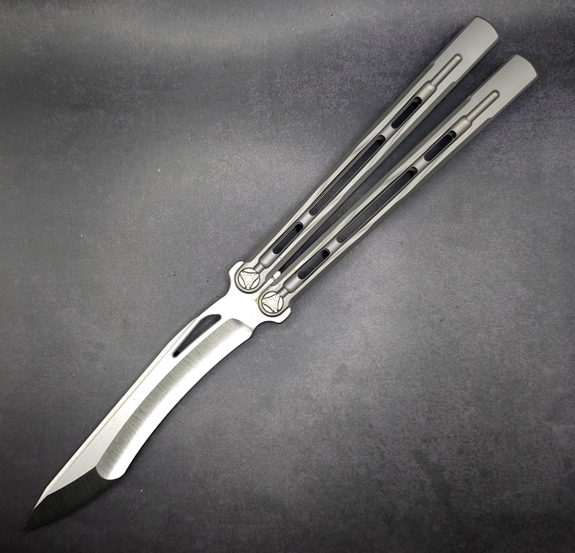 Introducing the Lyra – a precision-engineered balisong crafted from solid titanium billets with a channel construction. This design ensures top-tier flipping dynamics, enhanced durability, and a distinct aesthetic appeal.